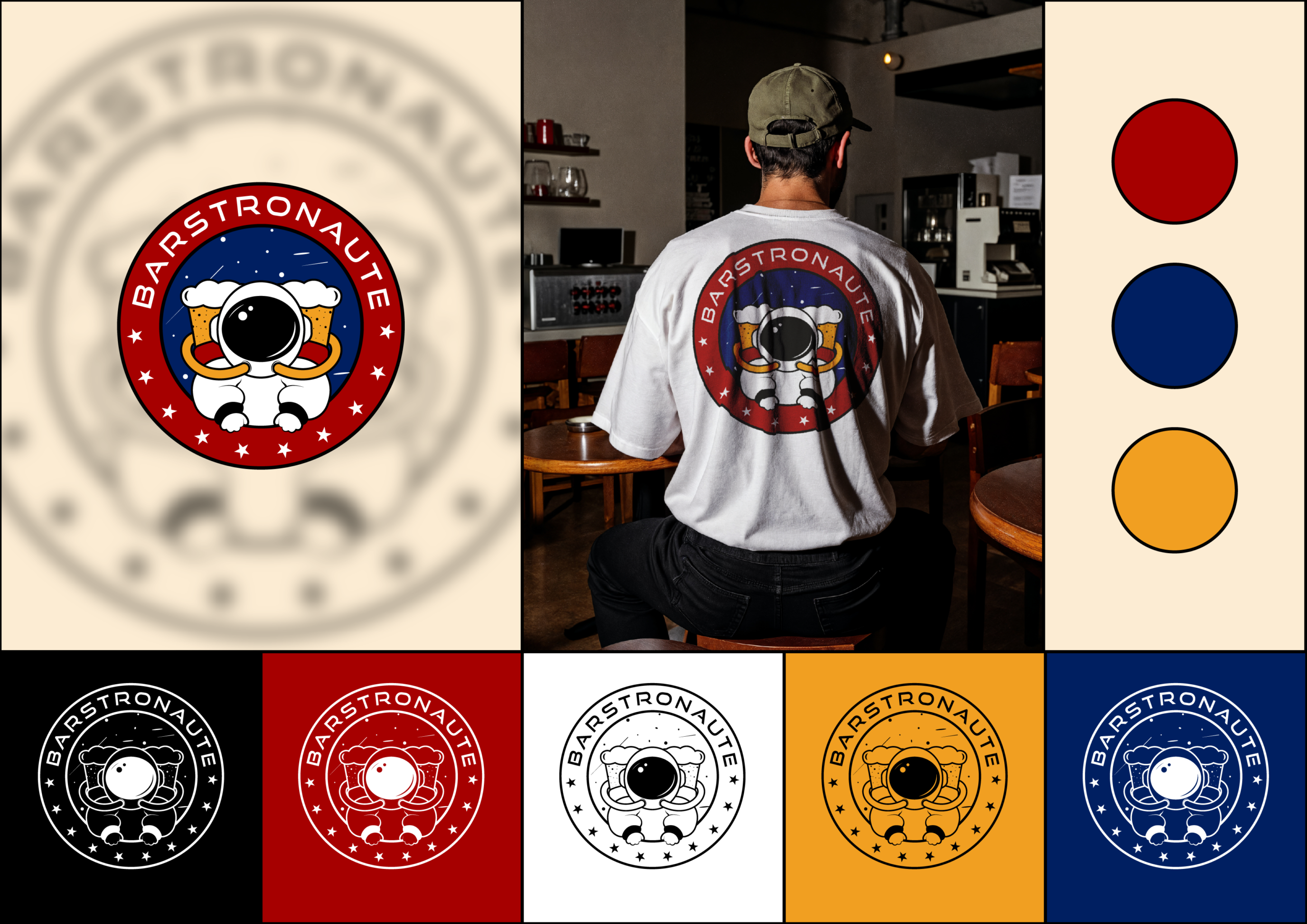 J’ai réalisé ce logo pour une association étudiante ayant ouvert un bar autogéré au sein de leur campus. Le projet visait à créer une identité visuelle forte, ludique et fédératrice, reflétant à la fois l’esprit convivial du lieu et l’univers décalé porté par les étudiants. Le personnage du Barstronaute incarne cette ambiance festive et collective, pensée comme un symbole de rencontre et de partage.